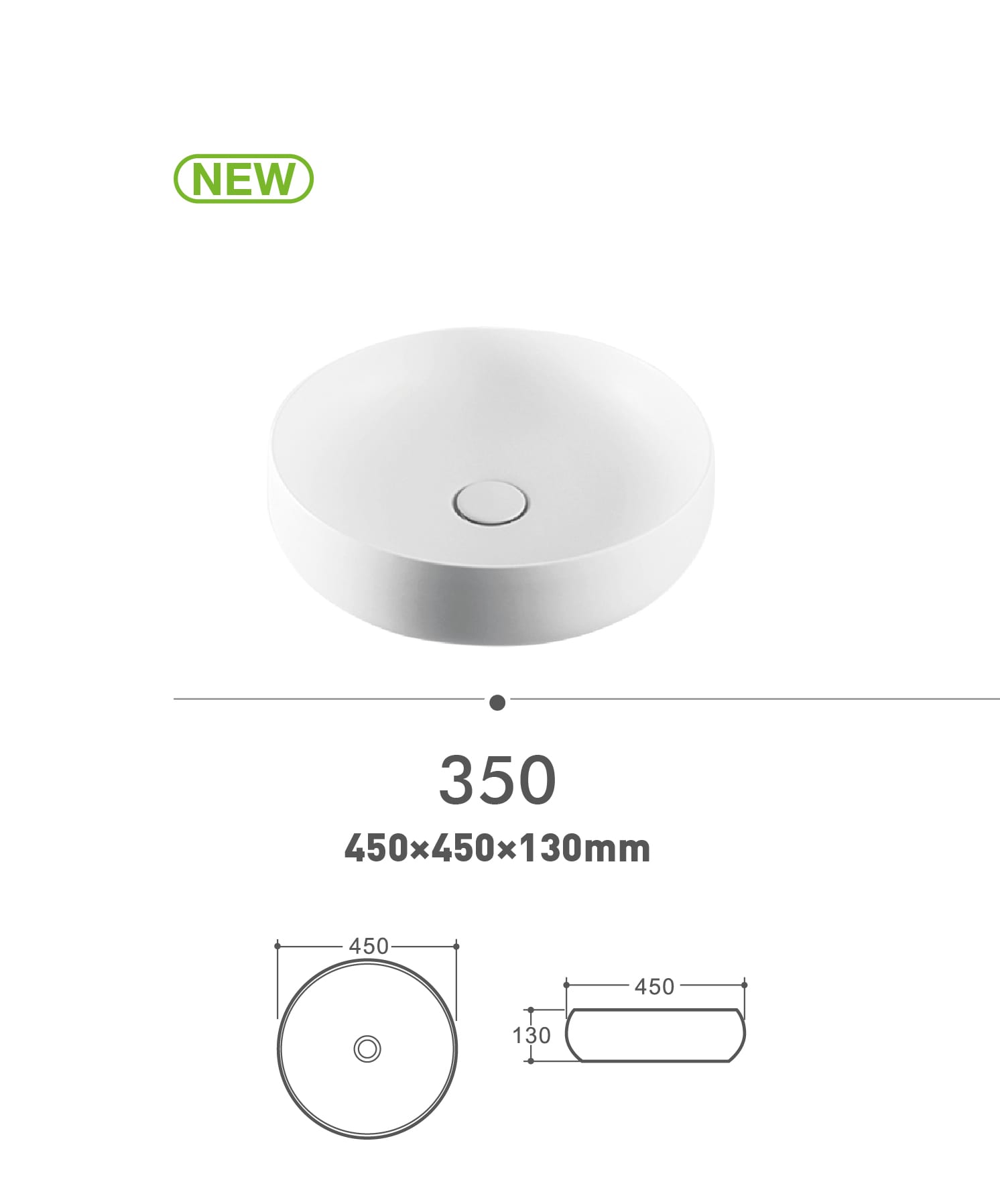 White Round Countertop Basin 450*450*130mm - Ceramic-350