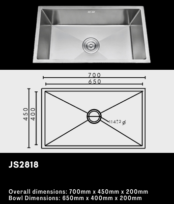 Luxury Single Bowl Kitchen Sink 700x450mm - Stainless Steel - JS2818