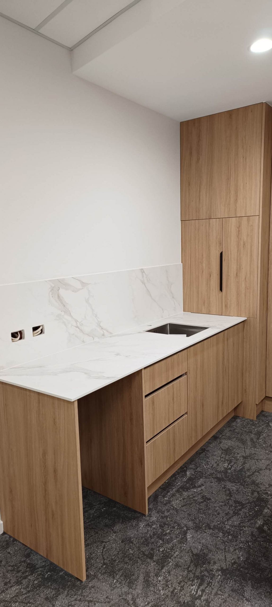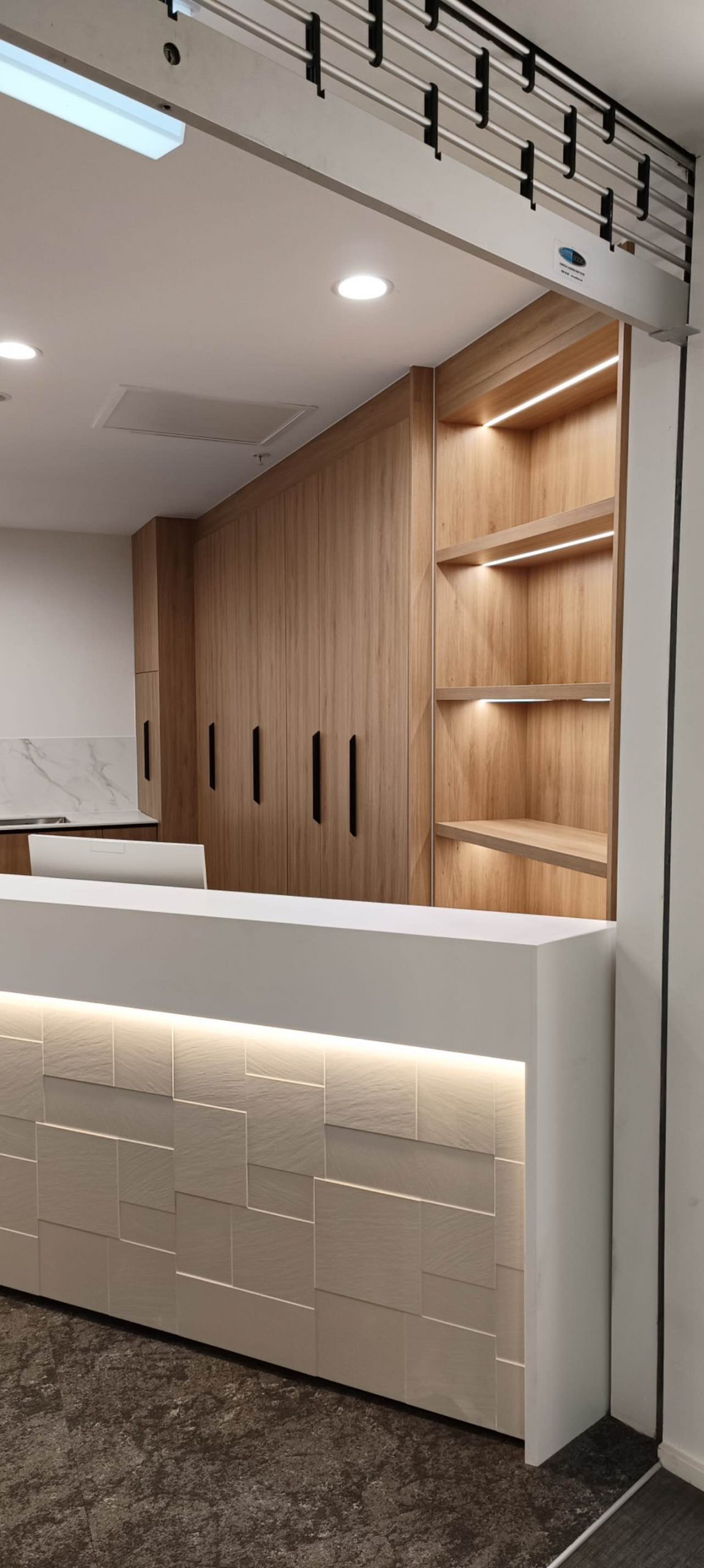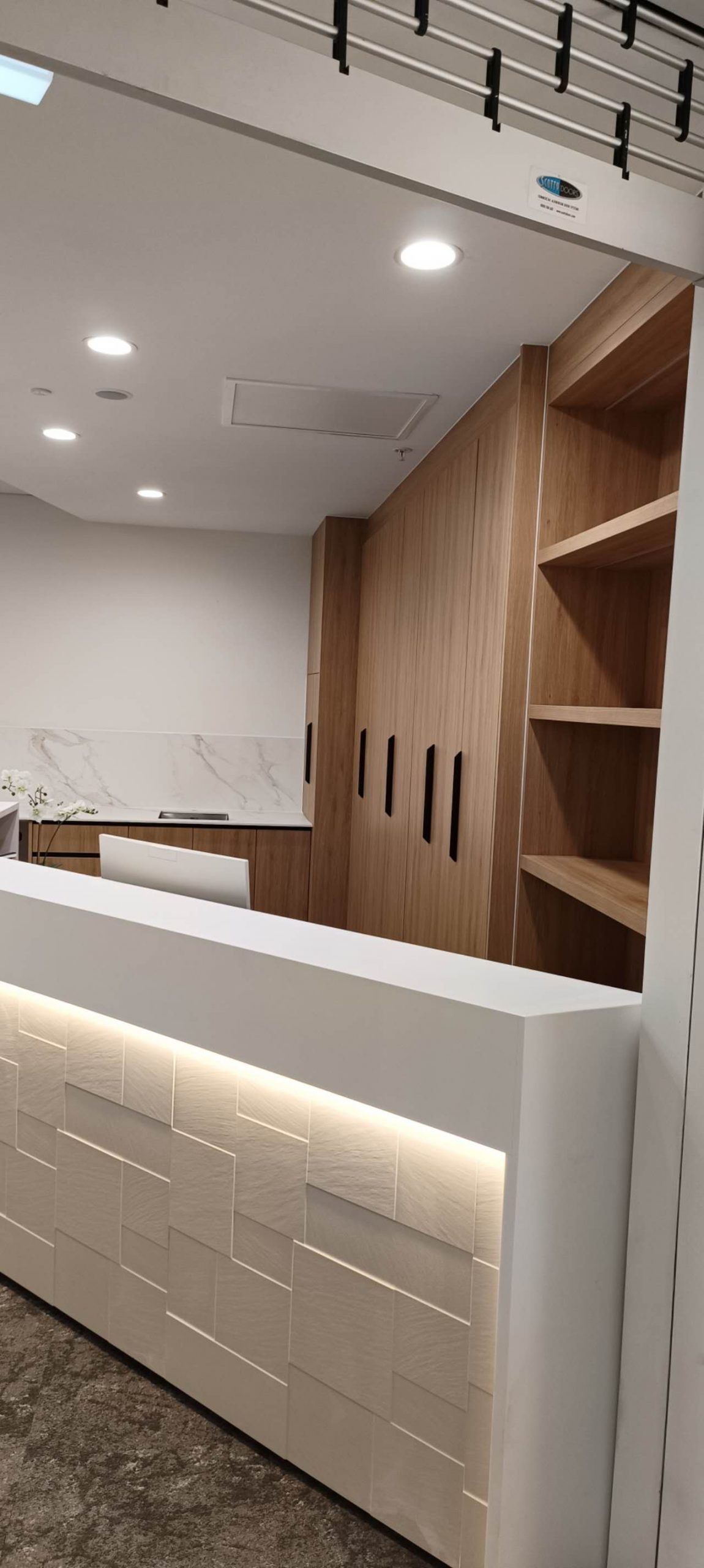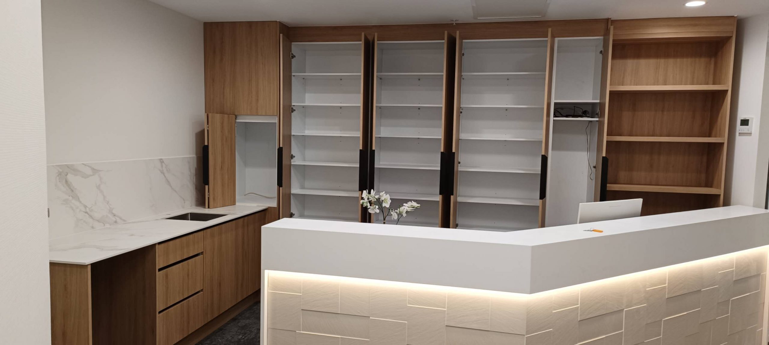 Our team has meticulously crafted and installed bespoke cabinetry for their reception area, enhancing both functionality and aesthetic appeal. The design process was a collaborative effort, ensuring every detail aligned with Northshore Clinic’s vision for both them and their patients.