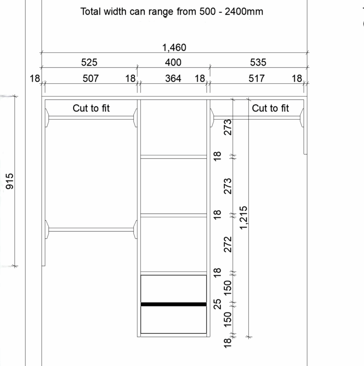 Fit up to 2400mm wide space (Can be cut to fit the size you need)