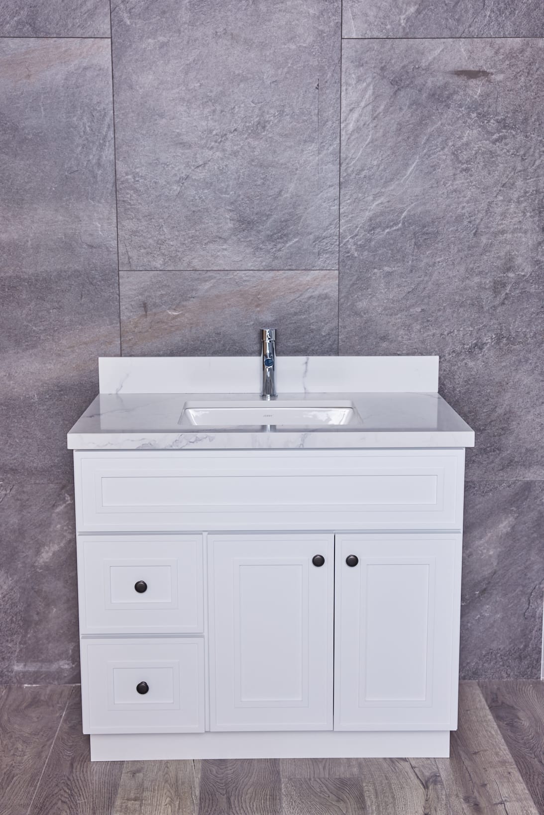 * Vanities, SOLID WOOD drawers and front panels, plywood for back panel: please refer to pictures