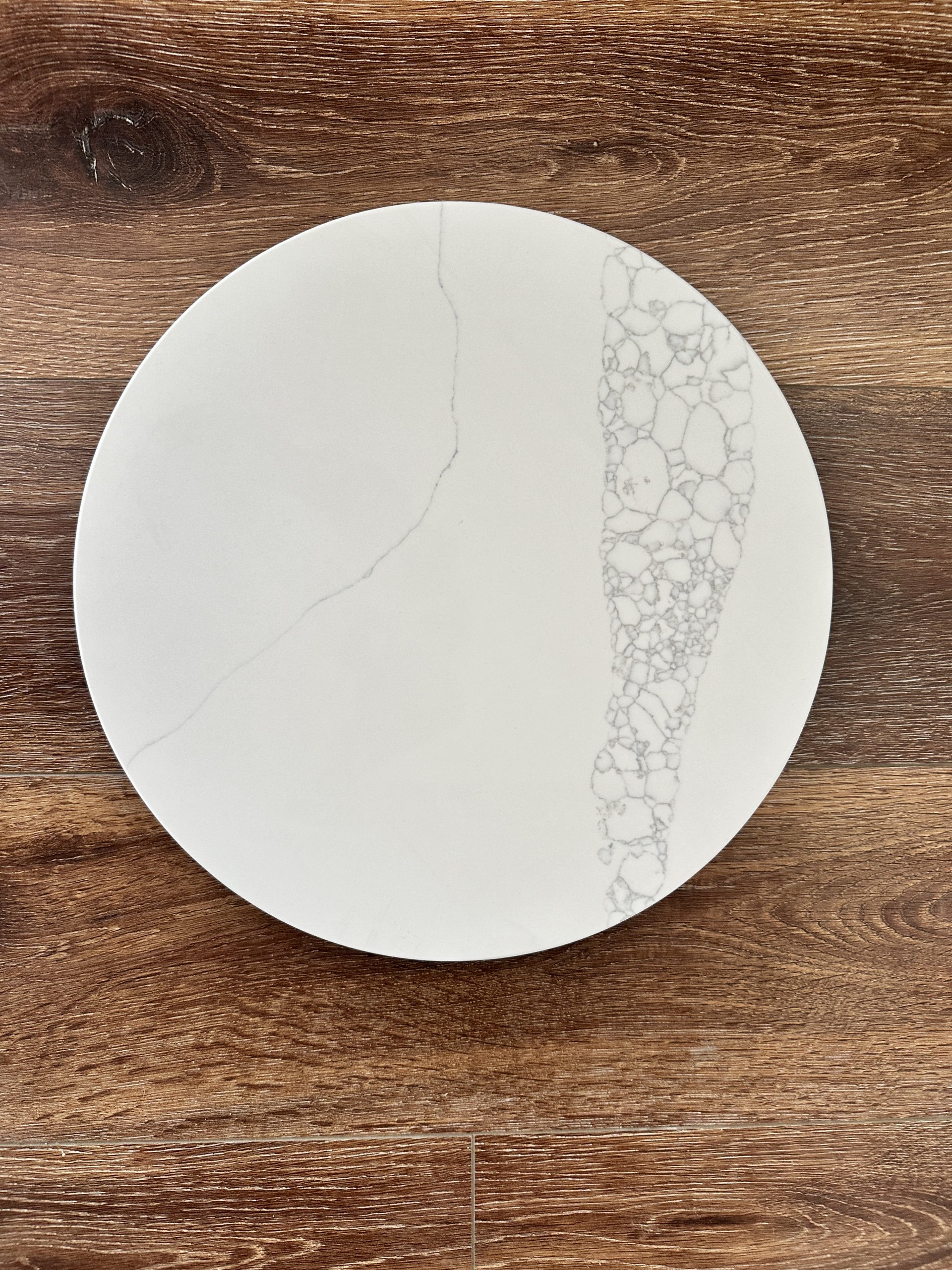 Made from high-quality engineered or sintered stone for lasting appeal and durability. Set a stunning and inviting table for your friends, family, and guests with the Jerry Kitchen & Bath Circular Marble Serving Board.