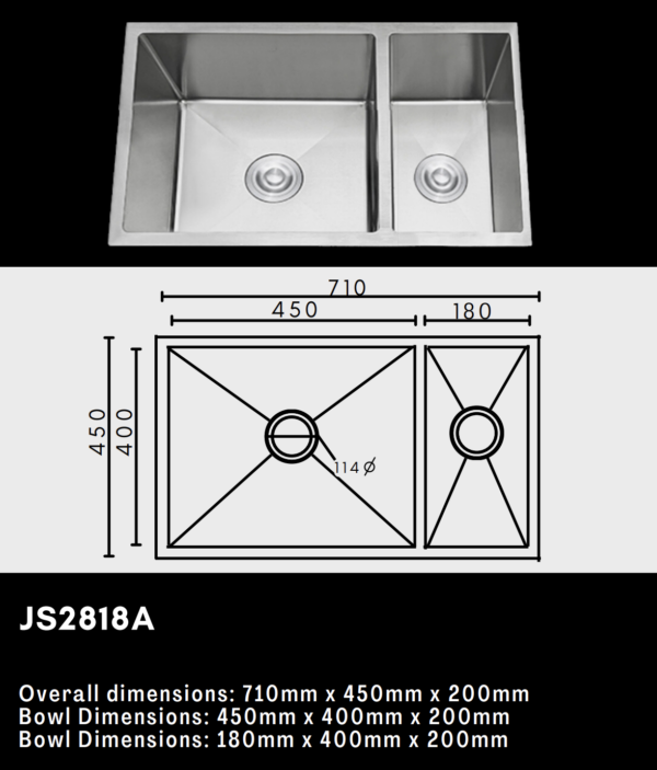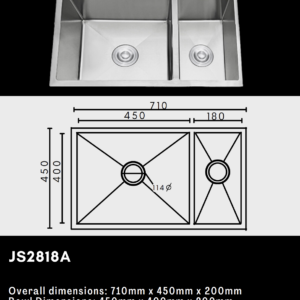 Premium Single Bowl Kitchen Sink 450x450mm - Stainless Steel - JS1818