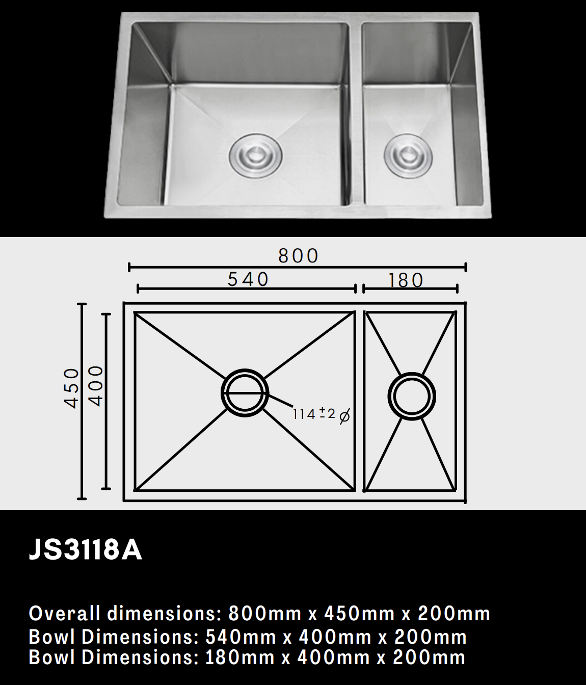 Premium Double Bowl Kitchen Sink 1160x500mm - Stainless Steel - JS894
