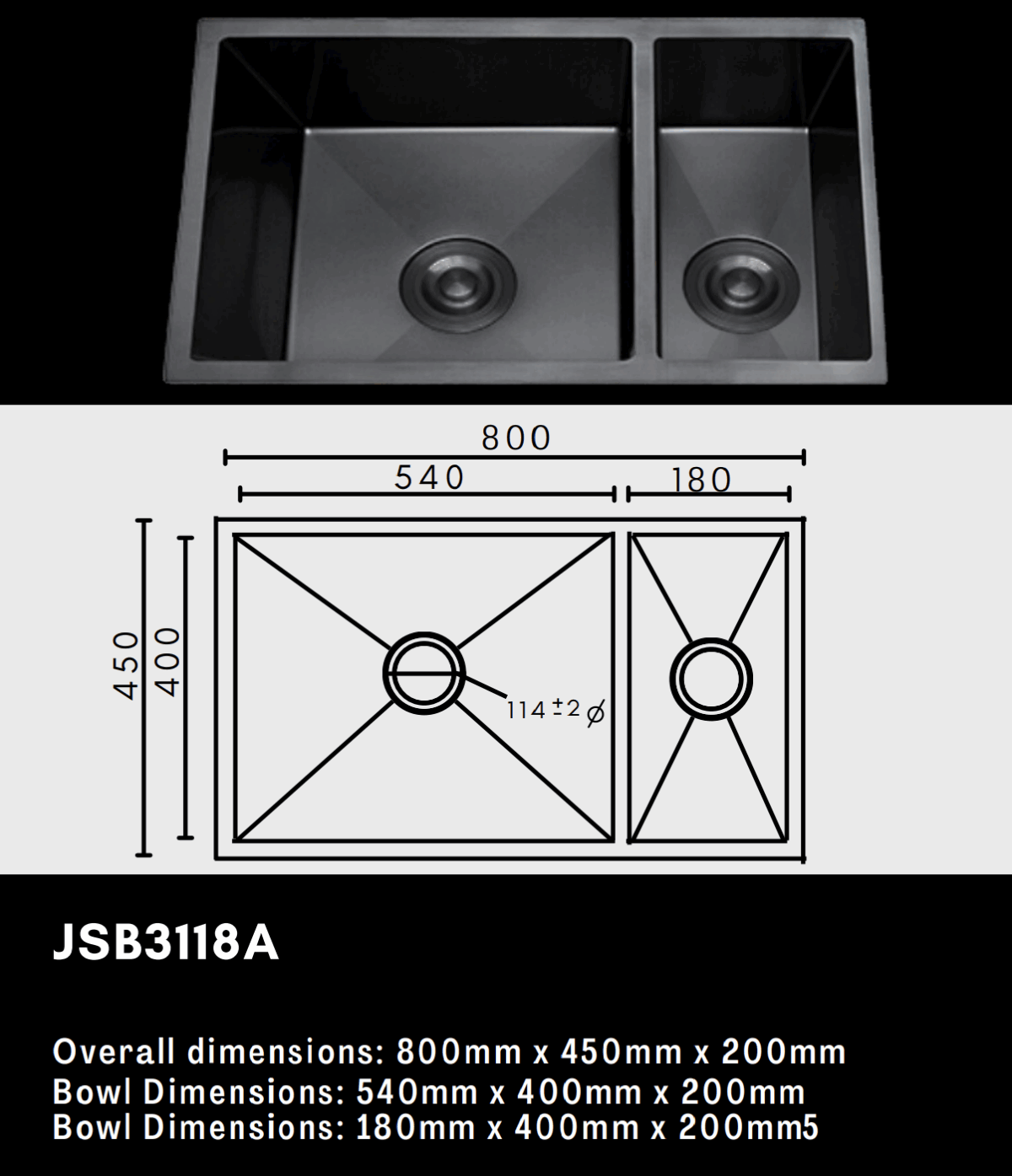 Elevate your kitchen’s form and function with the JSB3118A Luxury Double Bowl Sink — a contemporary design built for practical multitasking. Featuring two deep, same-size, spacious bowls, this sink is ideal for washing, rinsing, and food preparation simultaneously, bringing efficiency and elegance to your daily routine.