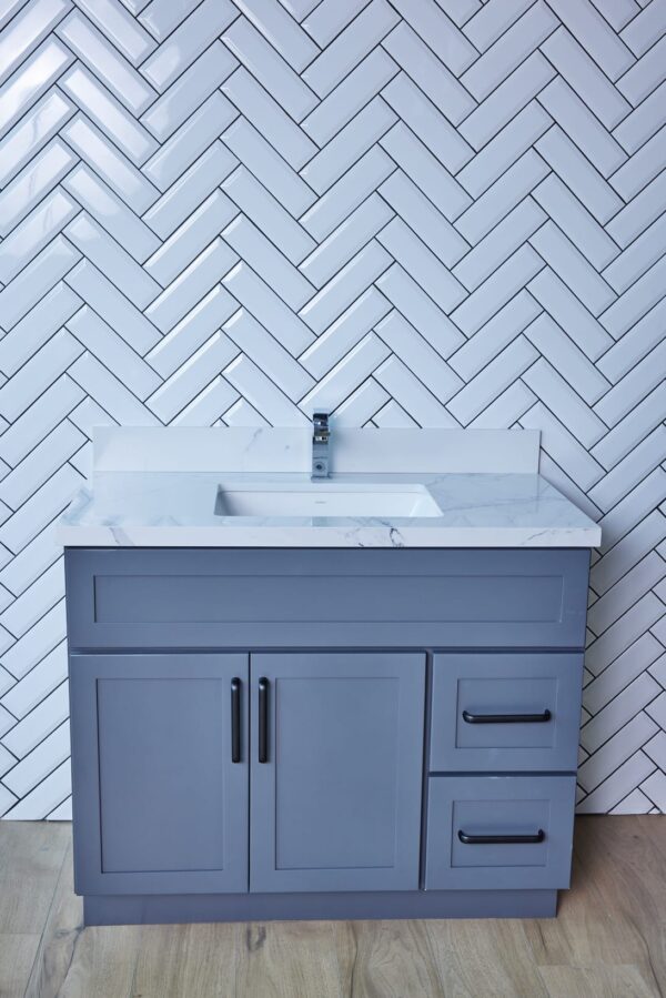 Dark Grey Freestanding Vanity 600mm with Drawers - Solid Wood (NEW)
