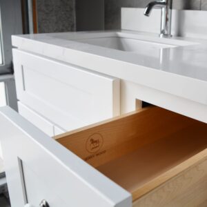 * Vanities, SOLID WOOD draws and front panels, plywood for back panel: please refer to pictures