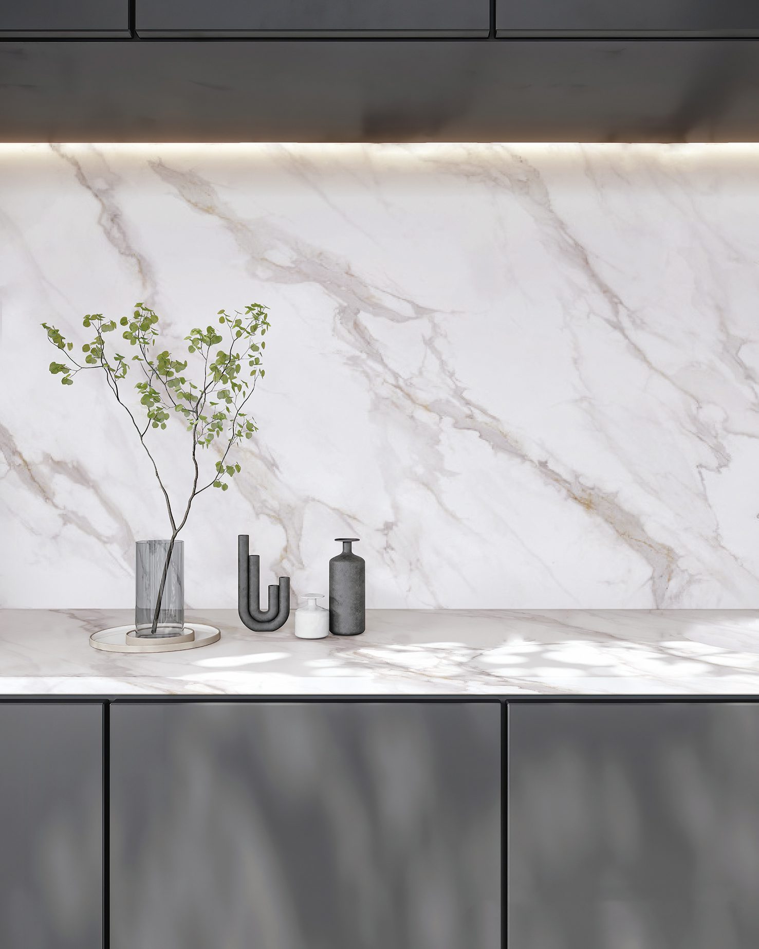 A tropical dream. If you own a beachfront property in New Zealand, the Horizon Stone Karst Gold incorporates styles from all over the world, showcasing colours that complement beachside huts and coastal villas, bringing luxury and tranquilly. The combination of white and neutral colours with brass accents gives the room a serene modern, and contemporary look.