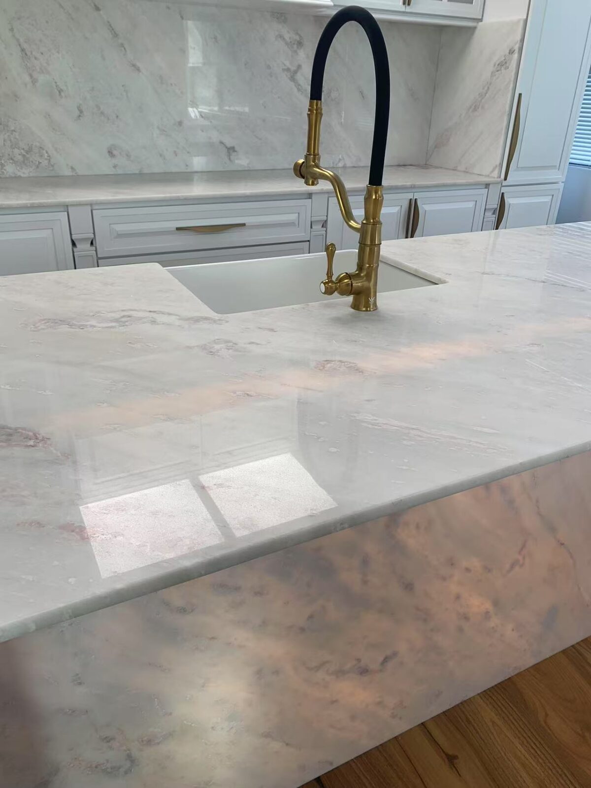 Marble Bianco Gold, a true gem of nature, boasts a deep, lustrous black backdrop adorned with intricate, contrasting white veining. Its dramatic appearance exudes a sense of grandeur and refinement, making it an iconic choice for those seeking a statement piece in their living spaces.