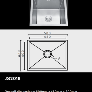 Premium Single Bowl Kitchen Sink 450x450mm - Stainless Steel - JS1818
