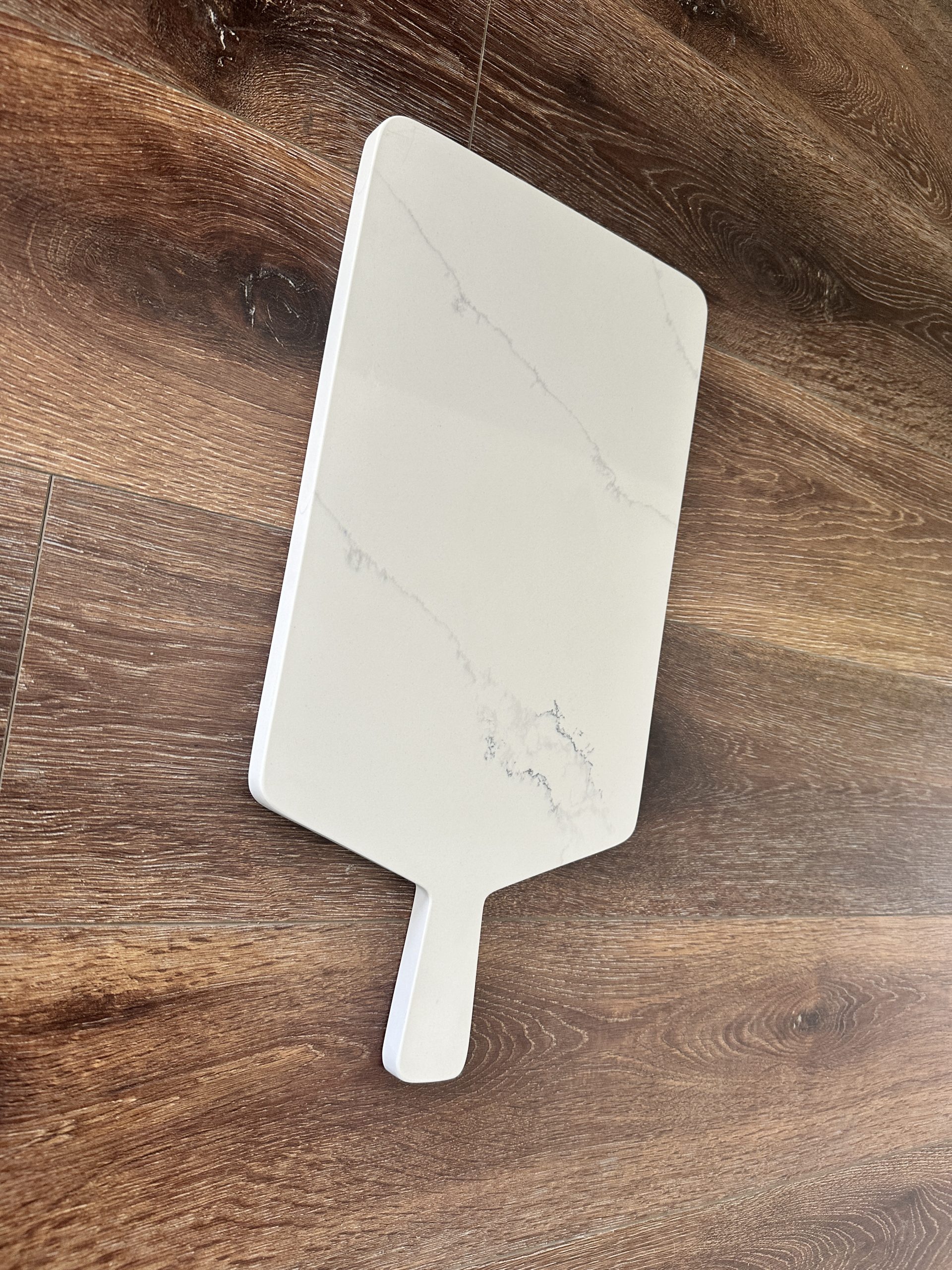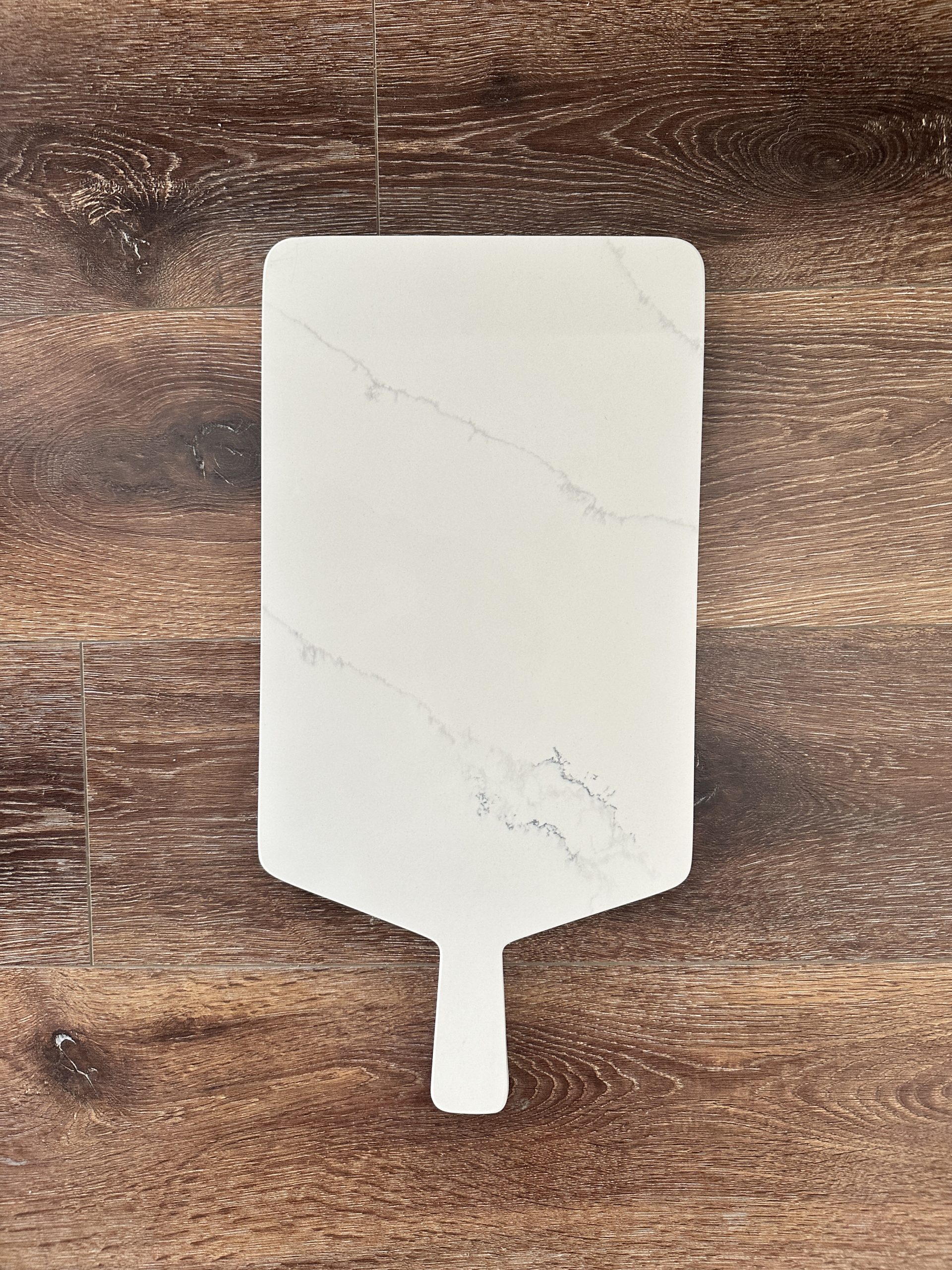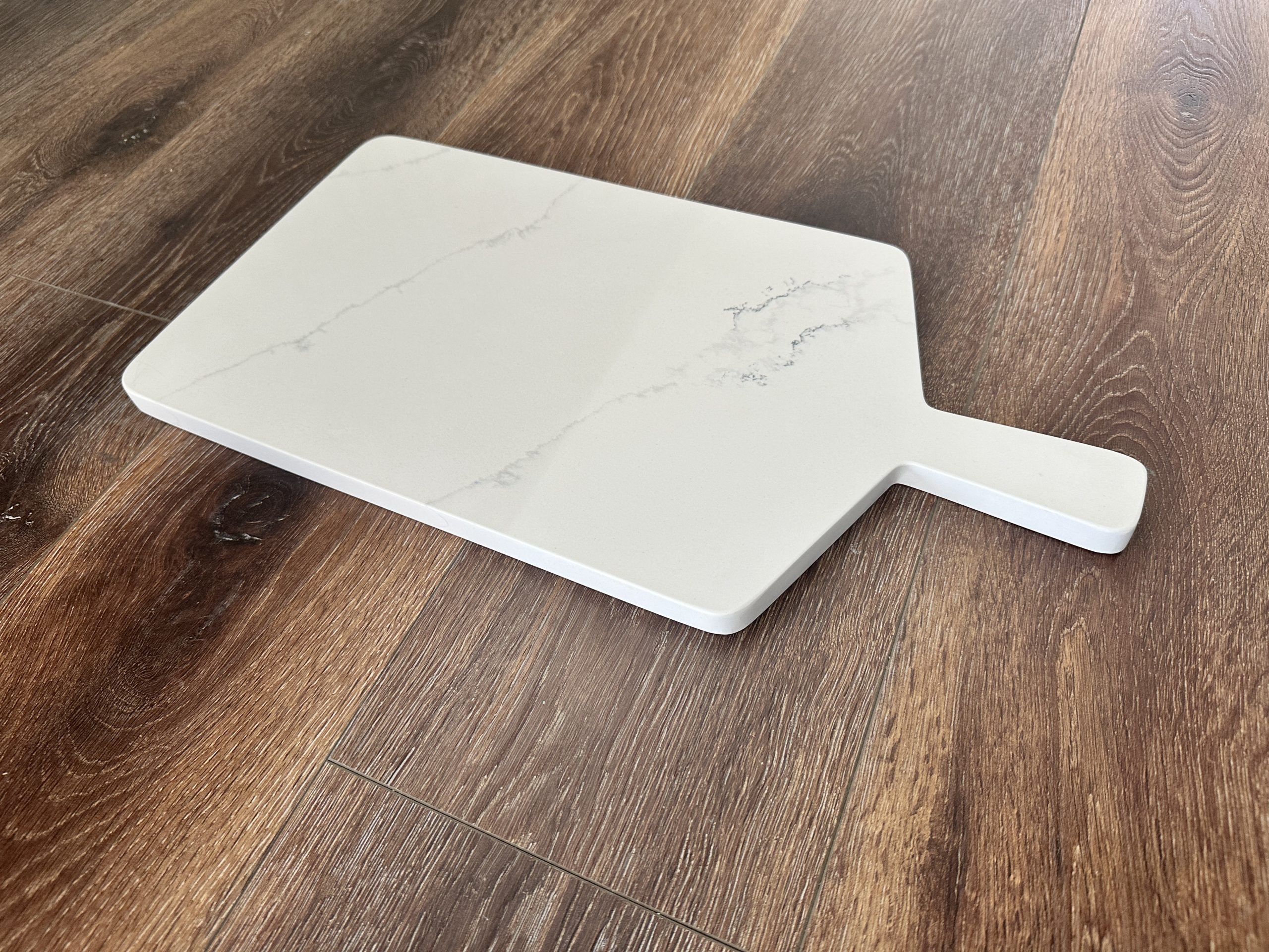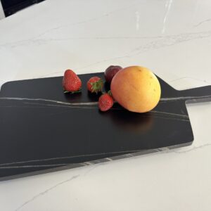At once practical and elegant. These slate and natural stone-look serving boards are ideal for serving cheese and fruit because they are naturally cool to the touch. Our handcrafted board is shaped with a flourish and polished to a high shine to set off and serve cheeses and accompaniments beautifully.