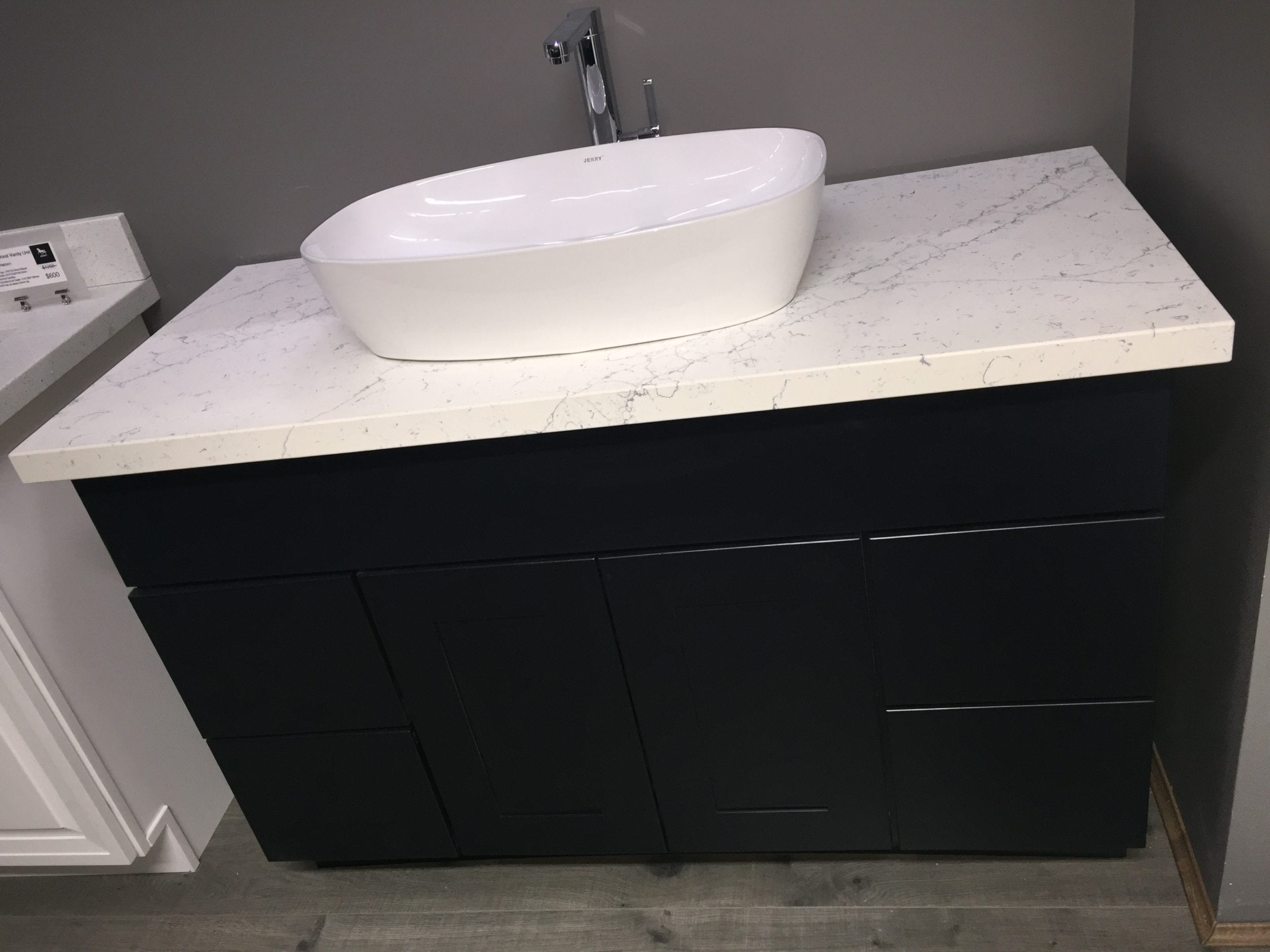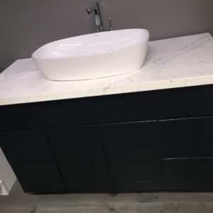 * Engineered stone bench top include pre-cuts for basin and tap